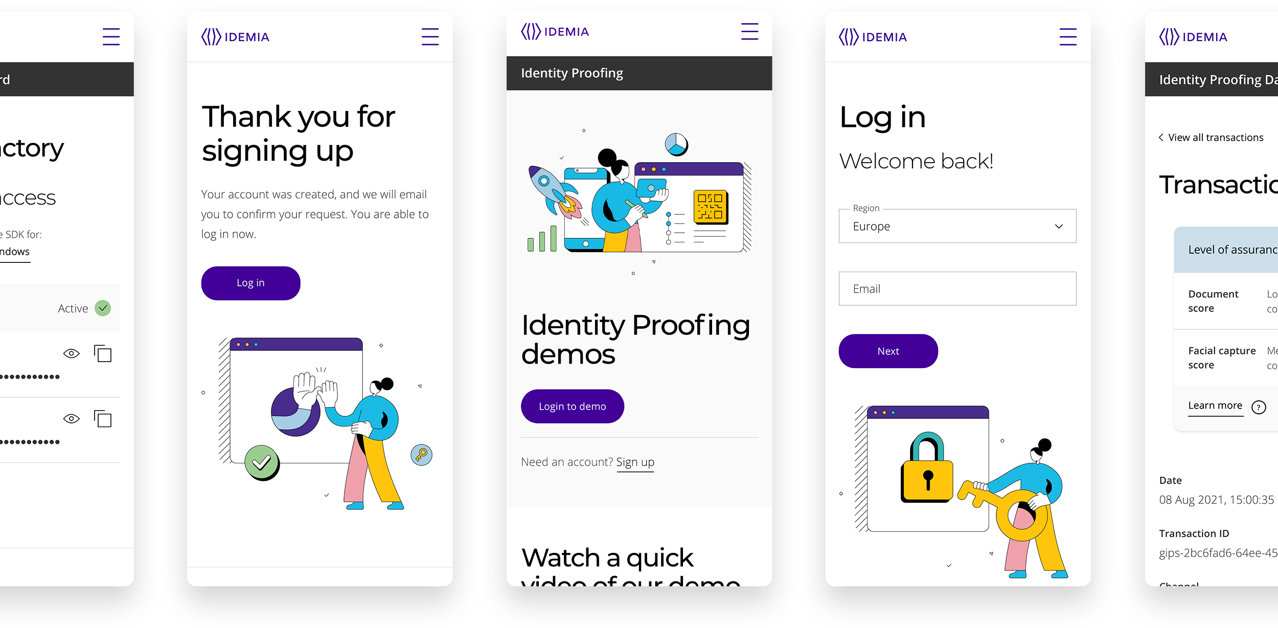 In the second phase, we worked to reimagine the authenticated experience. In addition to the same work streams above, this phase included optimizing unique demo flows for the identification verification solutions, the solution licensing and team management dashboard, documentation design, and data visualization.